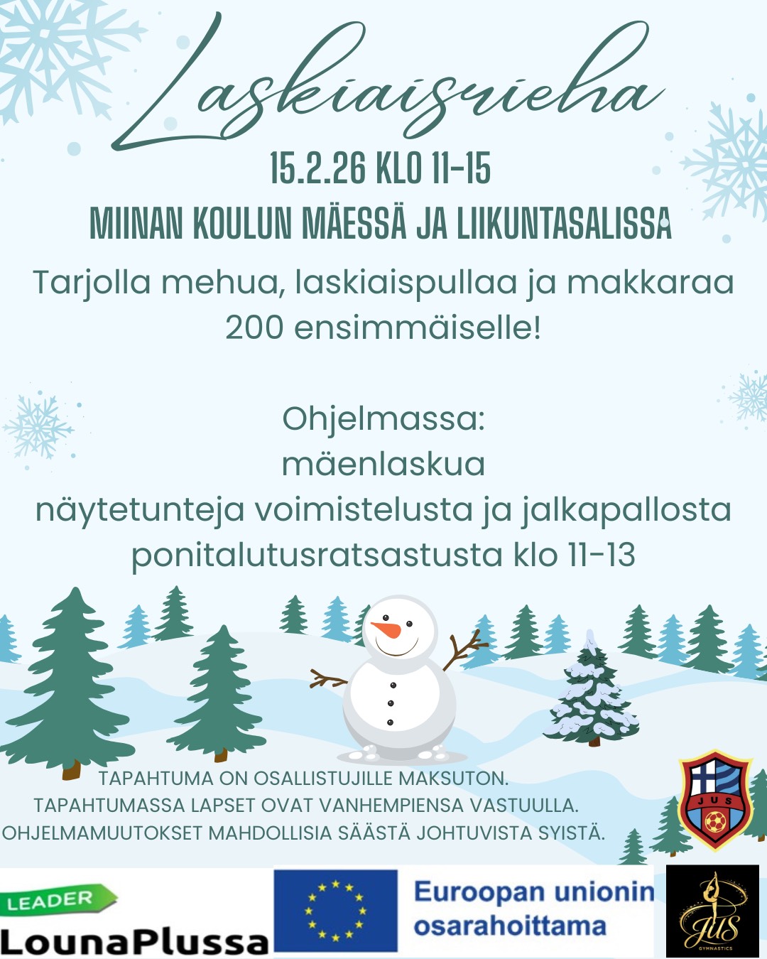 Seura pidättää oikeuden ryhmien muutoksiin, mikäli kaikkia ryhmiä ei saada täyteen. Jokaiselle ryhmälle määritelty minimimäärä osallistujia, jolla ryhmä toteutuu.