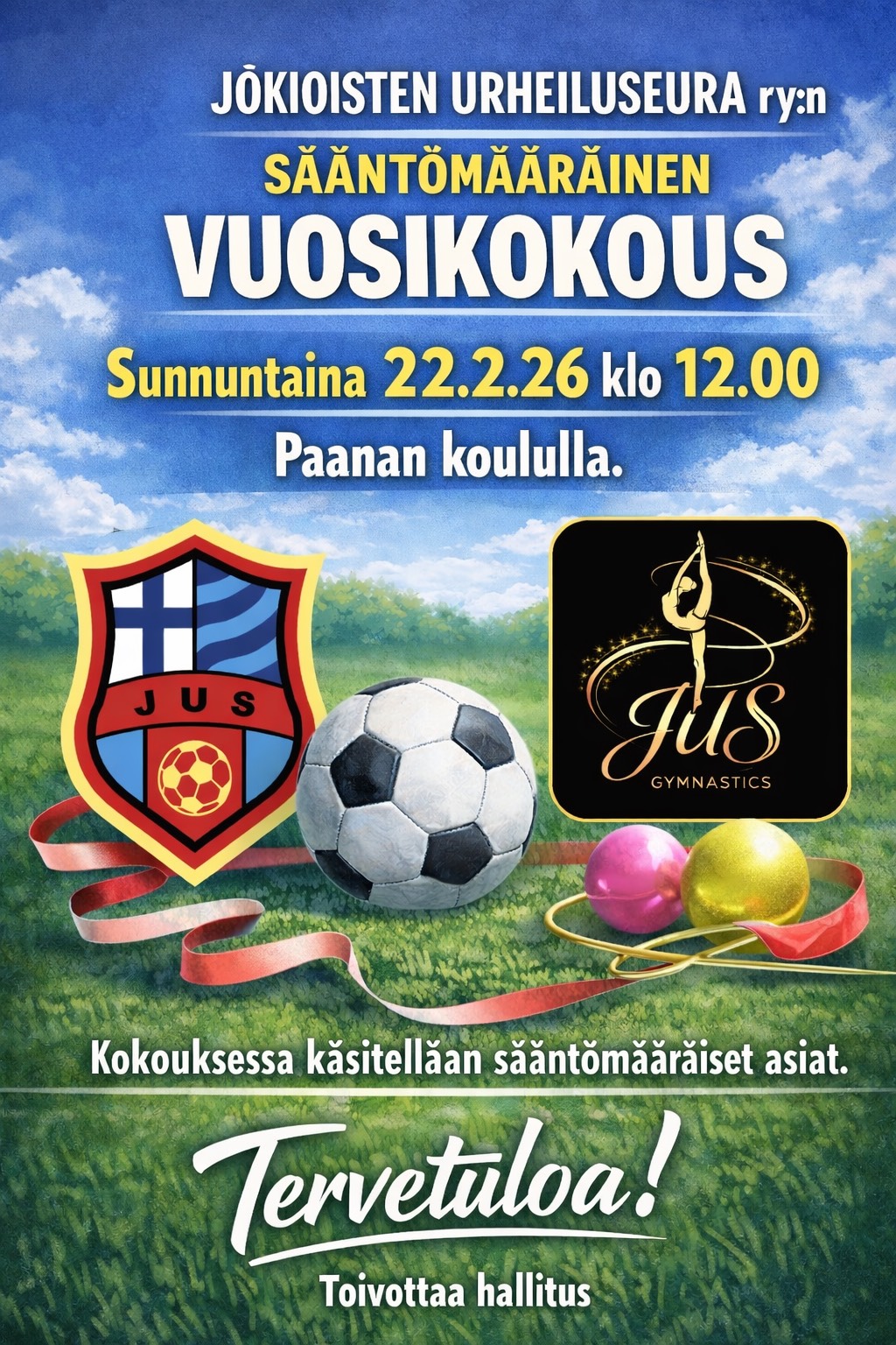 Jokioisten urheiluseura ei vastaa seurasta riippumattomista syistä peruuntuneista sali- tai kenttävuoroista, jotka aiheuttaa treenien peruuntumisen.