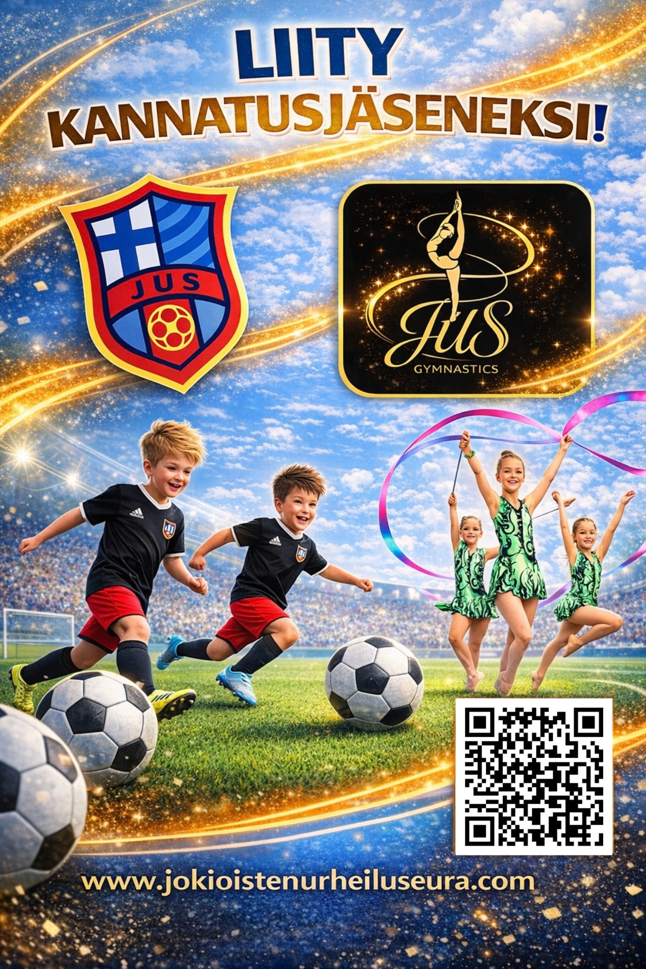 Tule mukaan kannustamaan lasten harrastamista Jokioisten urheiluseurassa ja tukemaan seuran toimintaa!Jokioisten urheiluseura on keväällä 2023 perustettu urheiluseura, jonka lajeina tällä hetkellä ovat jalkapallo, voimistelu ja naisten tanssillinen voimistelu. Liikutamme viikottain noin 80 harrastajaa Jokioisilla. Seuran tavoitteena kasvattaa jäsenmäärää ja mahdollistaa mahdollisimman monen säännöllinen liikkuminen.